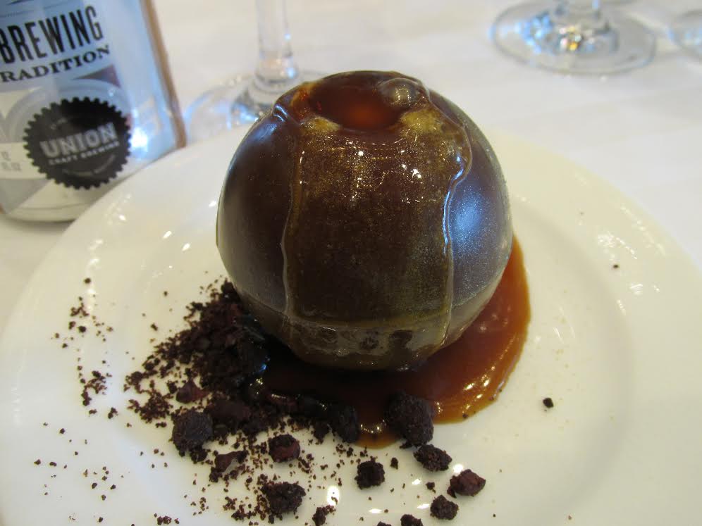 While all the food looked wonderful, our dessert was beautiful! It was called Dusty Miller Semifreddo with warm toffee sauce, paired with Balt Altbier from Union Craft Brewing and Tsunami Stout from Pelican Pub & Brewery. I tried to select just one photo to upload, but I couldn’t choose. So here are a couple: