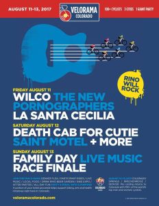 Velorama Colorado is coming to Denver August 11-13, and this festival is like nothing else. Starting Friday afternoon, August 11, twelve blocks of RiNo Art District will be transformed into a festival for an incredible weekend of bands, bikes and beyond, lasting through the big race finale on Sunday. Bands lined up for Velorama include Wilco, Death Cab for Cutie, The New Pornographers, Saint Motel, La Santa Cecilia, Tennis, plus local acts.